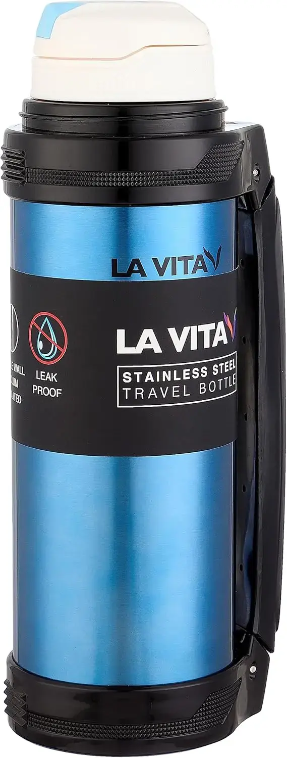 / 1.00L Stainless Steel Thermos in Blue Metallic with Deluxe Handle