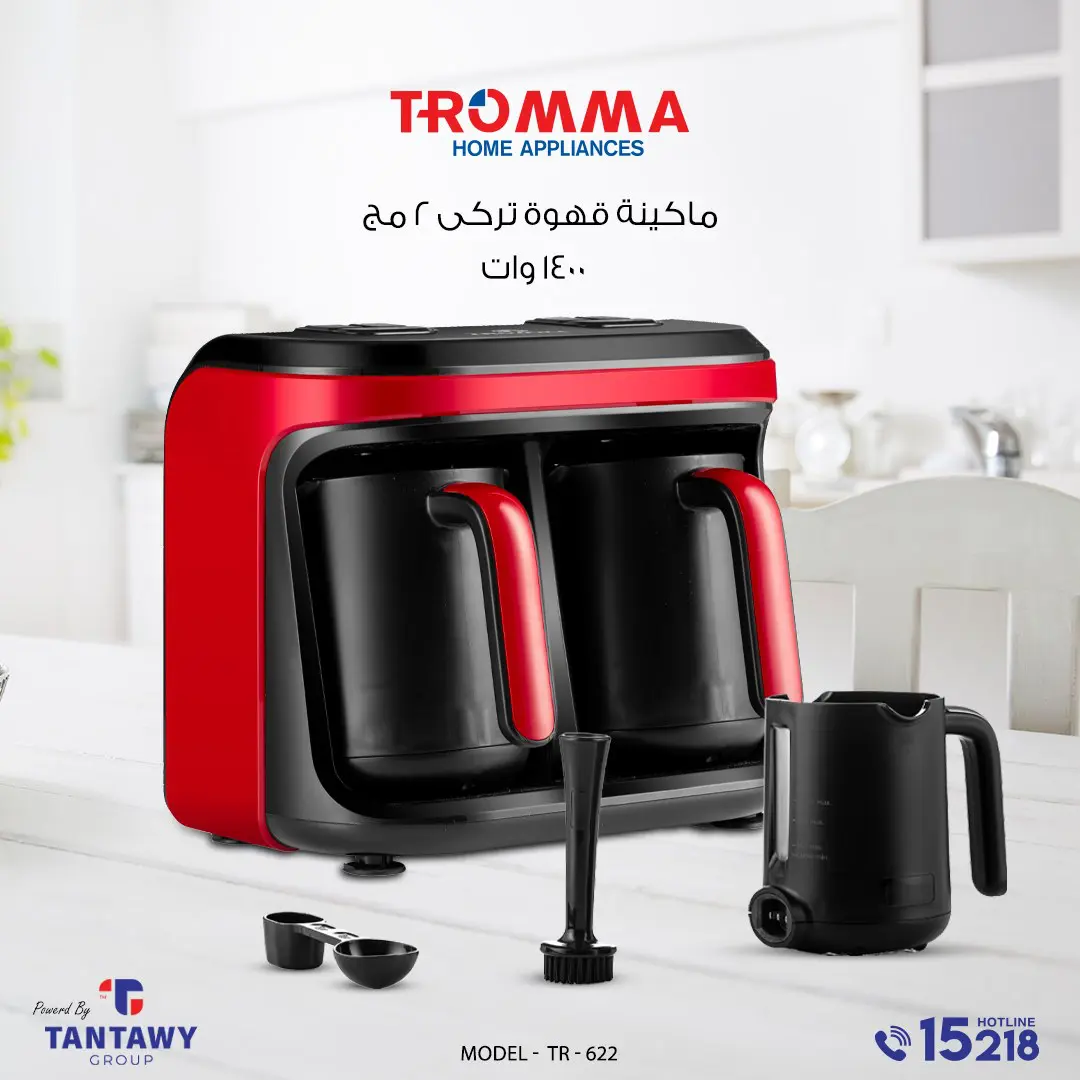 1004228 ماكينة قهوة تركى احمر 2مج 1400وات 622