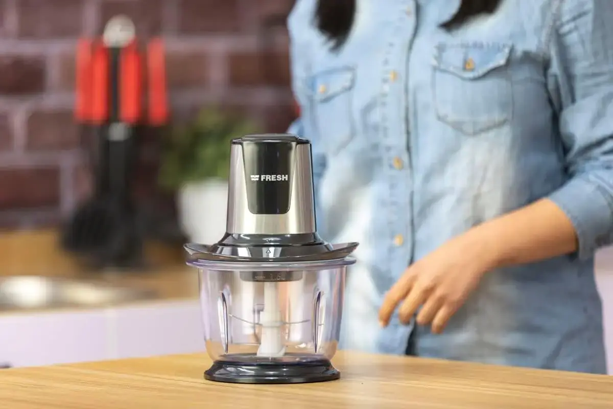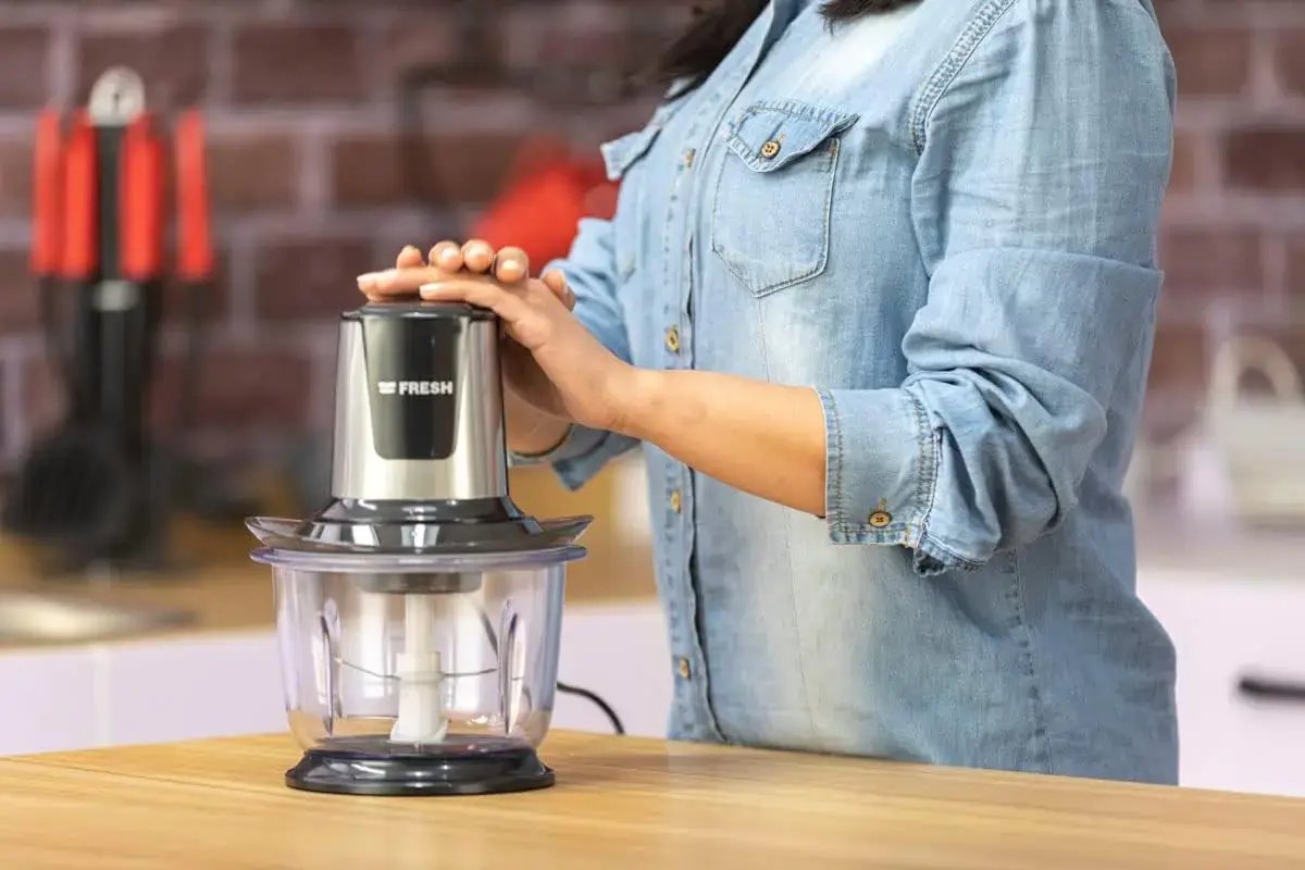 يفرم ويمزج مجموعة متنوعة من المواد الغذائية مثل الجبن والخضروات والمكسرات.