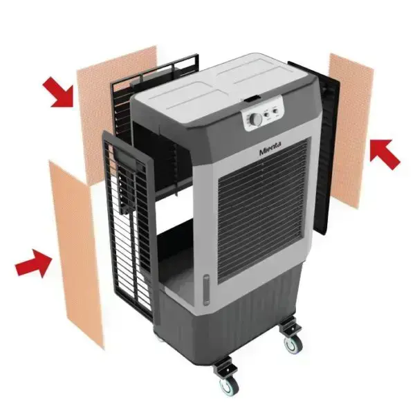 2 خزان مياه بسعة إجمالية 85 لتر مع وصلة خرطوم حديقة لساعات تبريد طويلة دون الحاجة إلى إعادة تعبئتها بالماء. توفر وسادة التبريد على شكل قرص العسل ثلاثية الجوانب تبريدًا مثاليًا وتنقية الهواء. 3 مداخل مياه – علوية وخلفية وخرطوم حديقة تتضمن عبوتين ثلج قابلتين لإعادة الاستخدام. 3 سرعات ووظيفة التأرجح لراحتك القصوى مضخة مياه مزودة بمستشعر تلقائي للسلامة توصيل هواء عالي مع انحراف في 4 اتجاهات 4 عجلات لسهولة الحركة ضمان لمدة سنتين