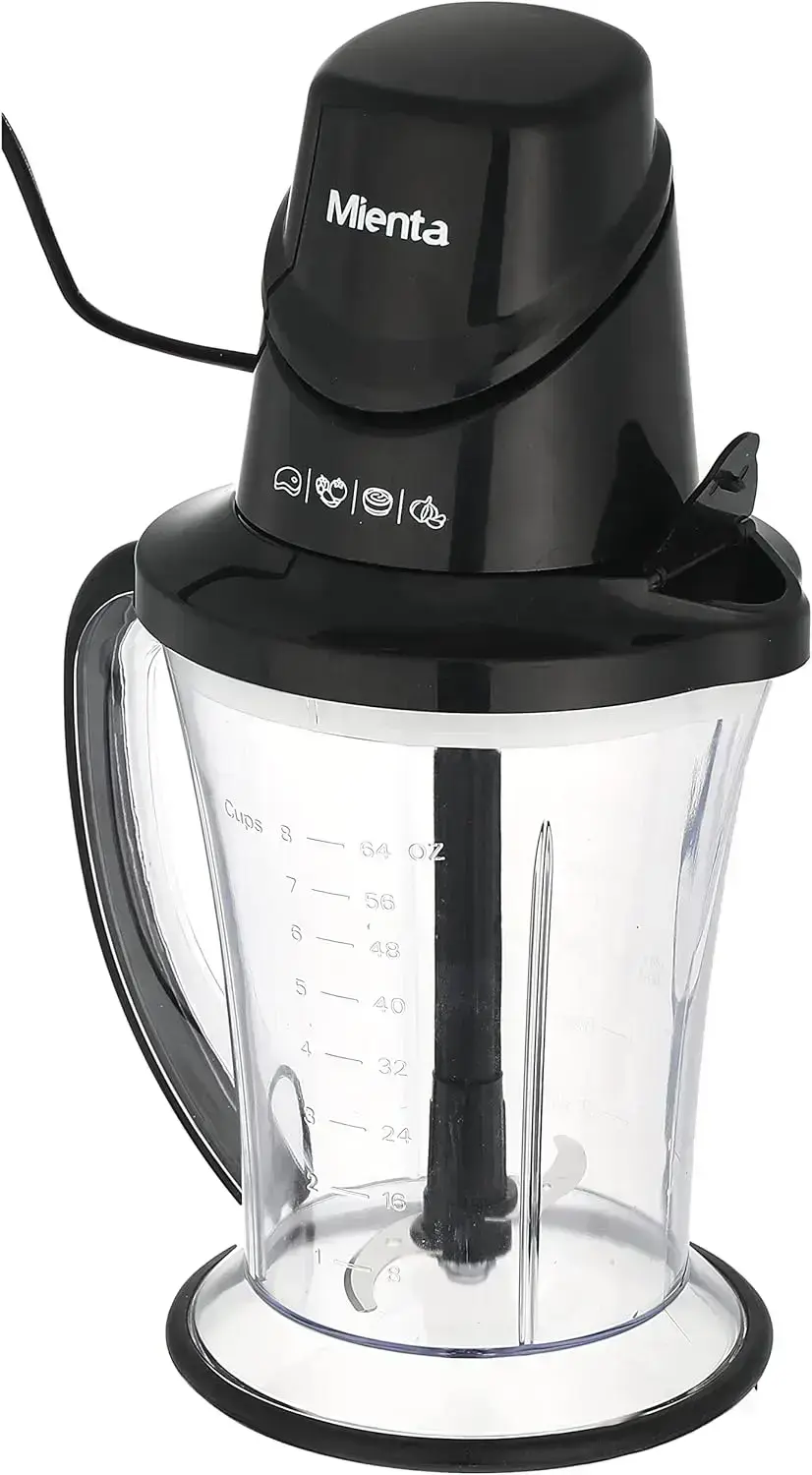صنبور لسهولة التنظيف مقشرة الثوم شفرات قابلة للإزالة لسهولة التنظيف قرص الخفق للبيض والمايونيز والكريمة المخفوقة وعاء تقطيع كبير سعة 2 لتر 6 شفرات من الفولاذ المقاوم للصدأ للحصول على نتائج سريعة ومتساوية ضمان لمدة سنتين