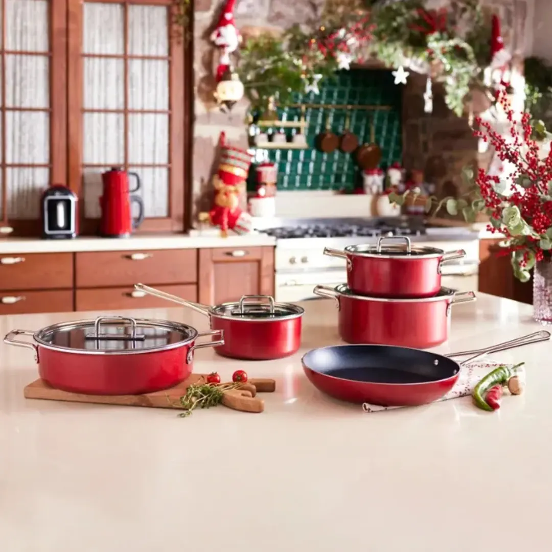 9-piece red Bio Granite cookware set